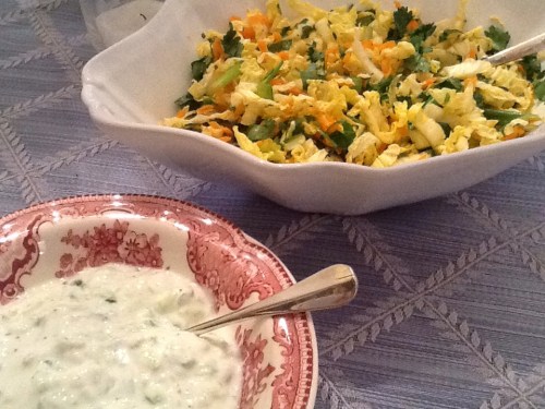 1 Persian cucumber, or 6 inch seedless cucumber, shredded & pressed through a strainer to dry