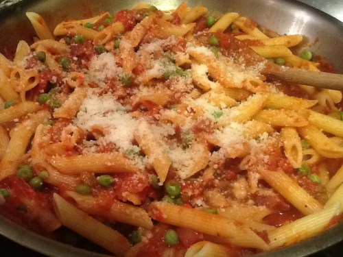 Scrape with with a spoon, throw in chopped black olives like kalamata, toss with pasta, think about cheese, dredge the pan with bread.
